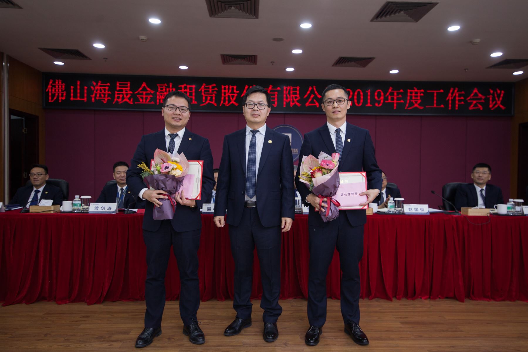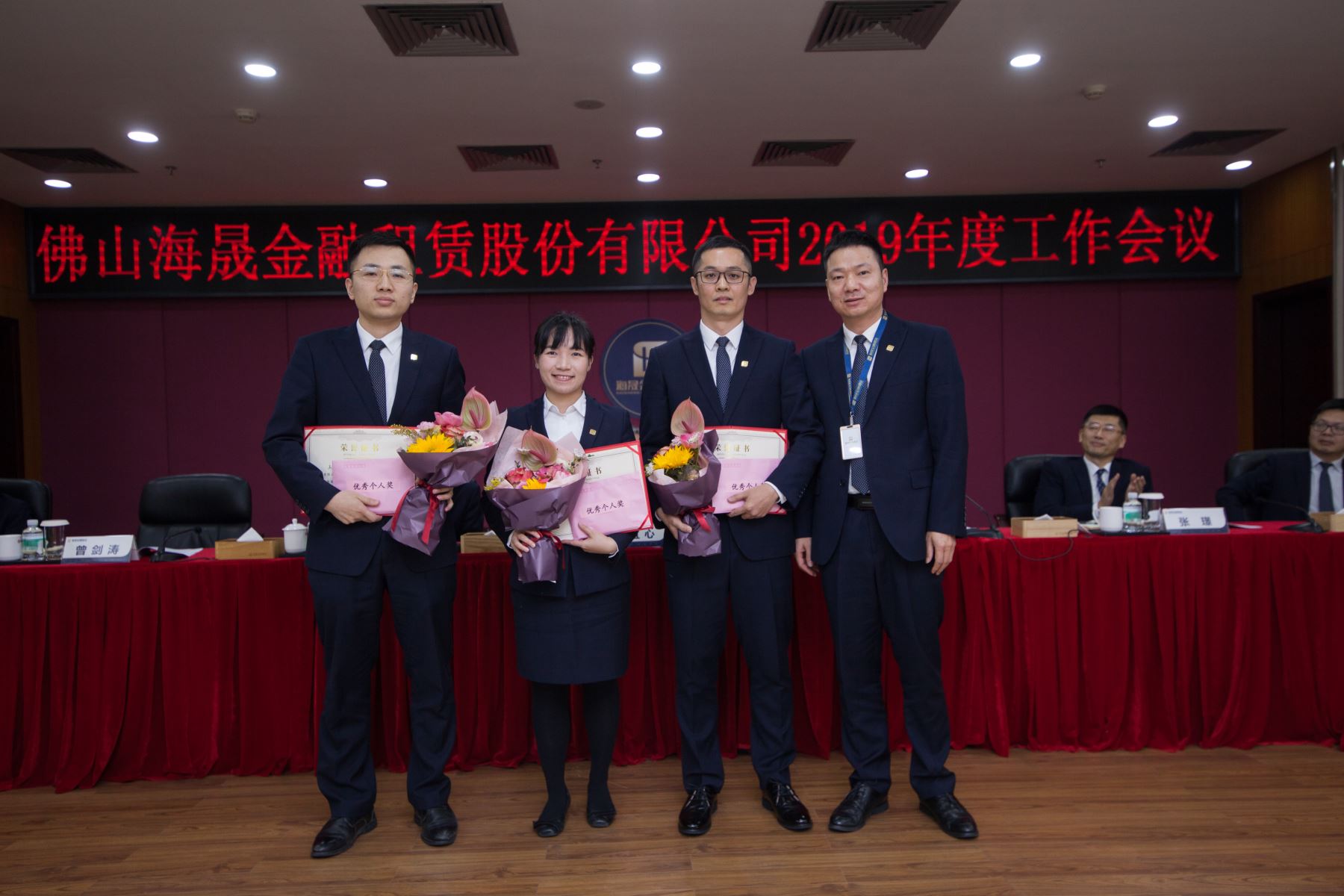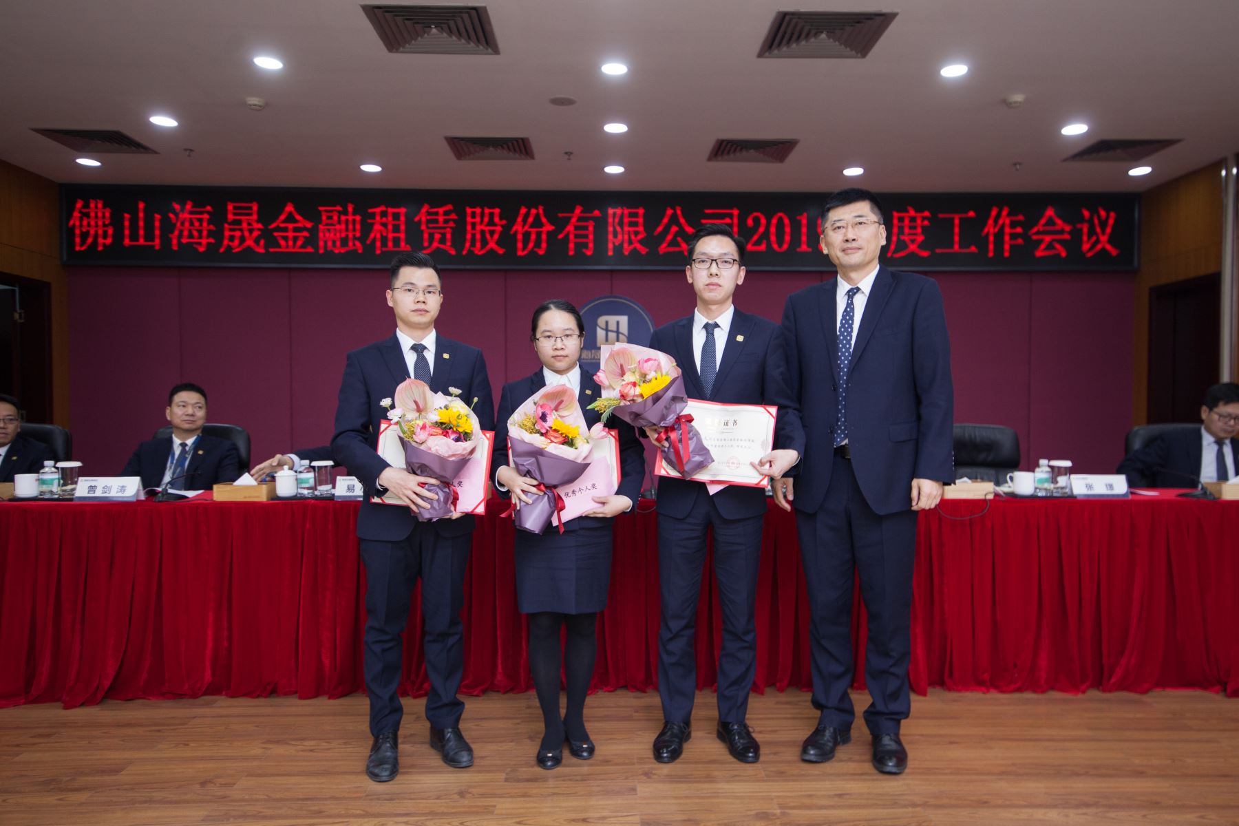 优秀部门奖获得者:租赁业务一部、金融市场部、计划财务部、资产管理部