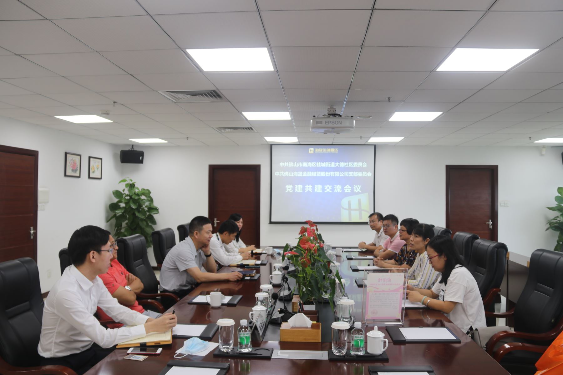 9月11日上午,为进一步推动社区党建共建工作,促进政企协调共同服务社区,中共佛山市南海区桂城街道大德社区委员会(下称“大德社区党委”)黎展涛书记及社区党委委员一行,莅临我司参加党建共建交流会议。中共古天乐代言太阳集团支部委员会(下称“海晟金租党支部”)曾剑涛书记、易小林副书记、赵国俊副书记,以及其他支委成员等参加了本次会议。