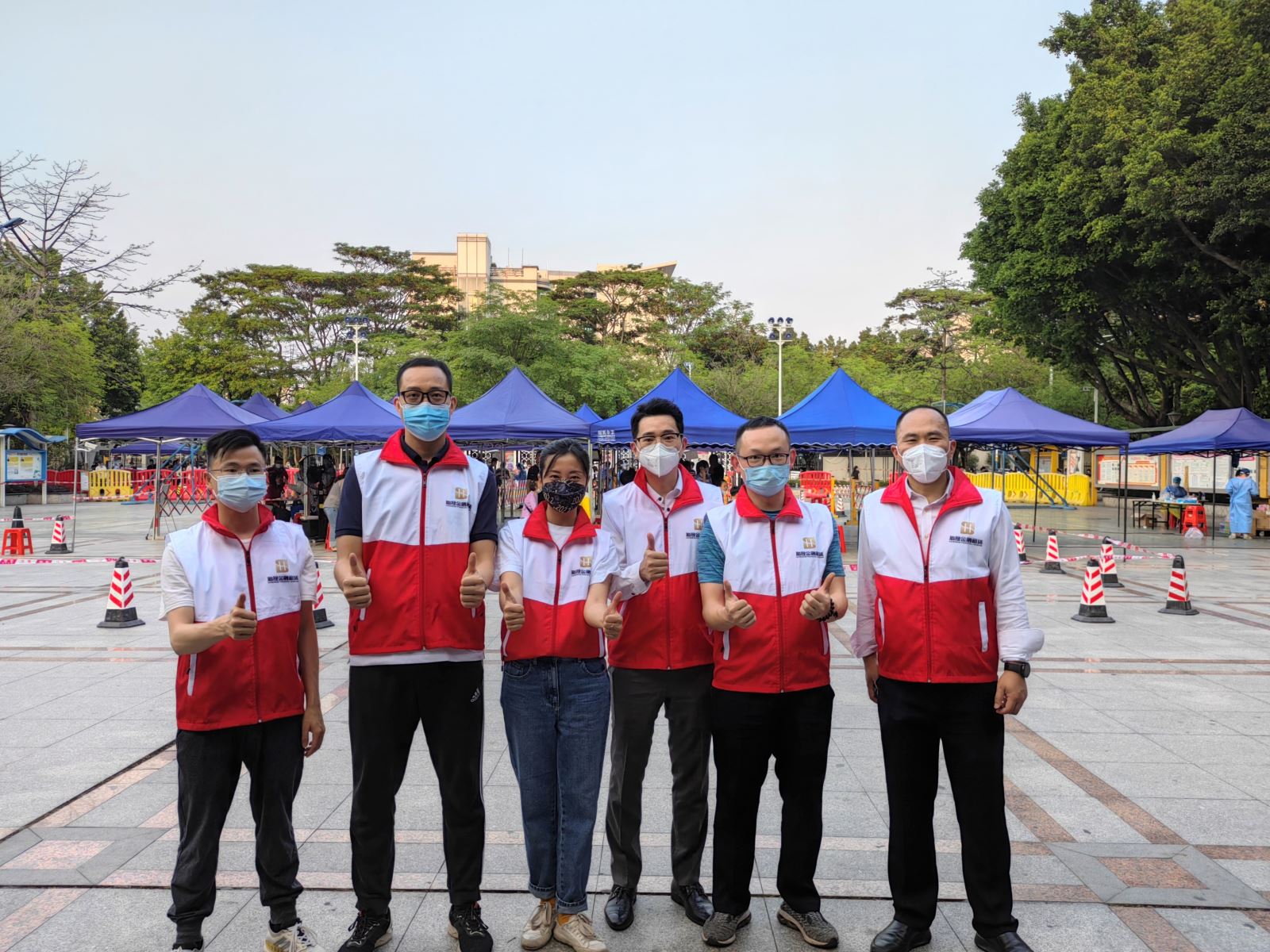 志愿服务期间,志愿者们穿上浅蓝防疫服,头戴医用隔离面罩和口罩,在等待做核酸检测的人群中维持秩序,引导群众有序排队,提前准备好粤康码、行程卡和粤核酸码。