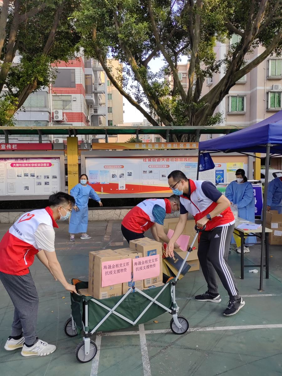 2022年4月11日,为积极支持社区防疫工作,海晟金租党支部先后派出两支志愿者服务队伍,为共建单位大德社区党委捐赠抗疫支援物资,并协助在大德社区文化公园开展大规模核酸检测工作。