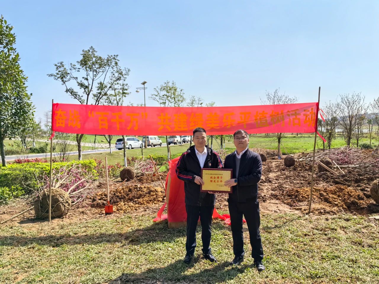 3月12日上午,海晟金租全体职工前往三水区乐平镇大同湖湿地公园。活动伊始,乐平镇副镇长黄锡滔向公司赠送牌匾,传递政企携手共建绿美乐平的信心。随后,海晟金租领导班子与乐平镇政府相关领导共同为海晟金租公益林揭碑。
