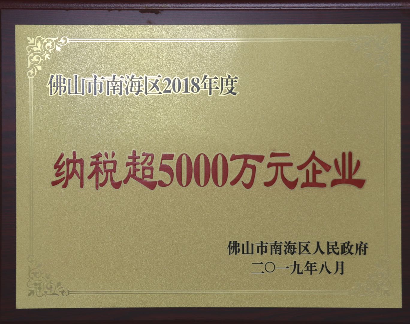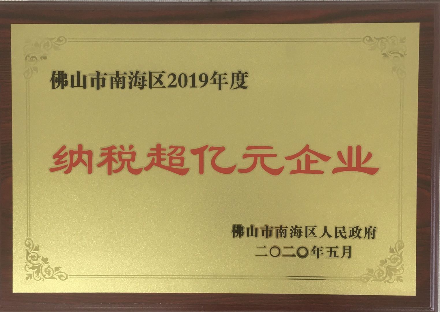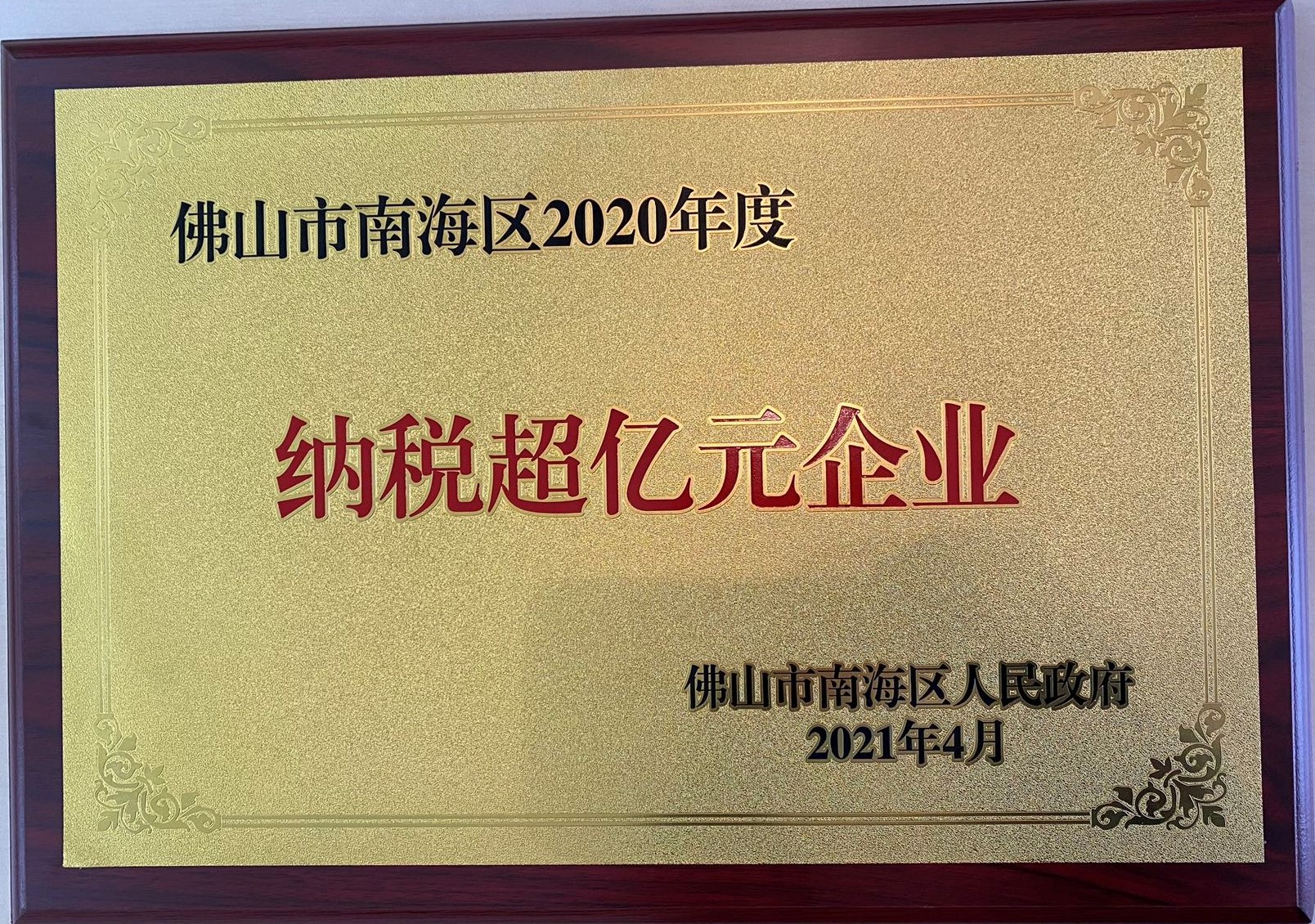 2021年4月 被佛山市南海区人民政府评为南海区纳税超亿元企业