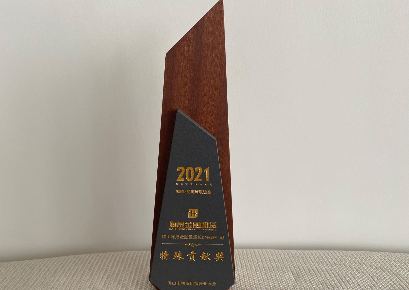 2021年10月 荣获佛山市融资租赁行业协会颁发的篮球•羽毛球联谊赛特殊贡献奖