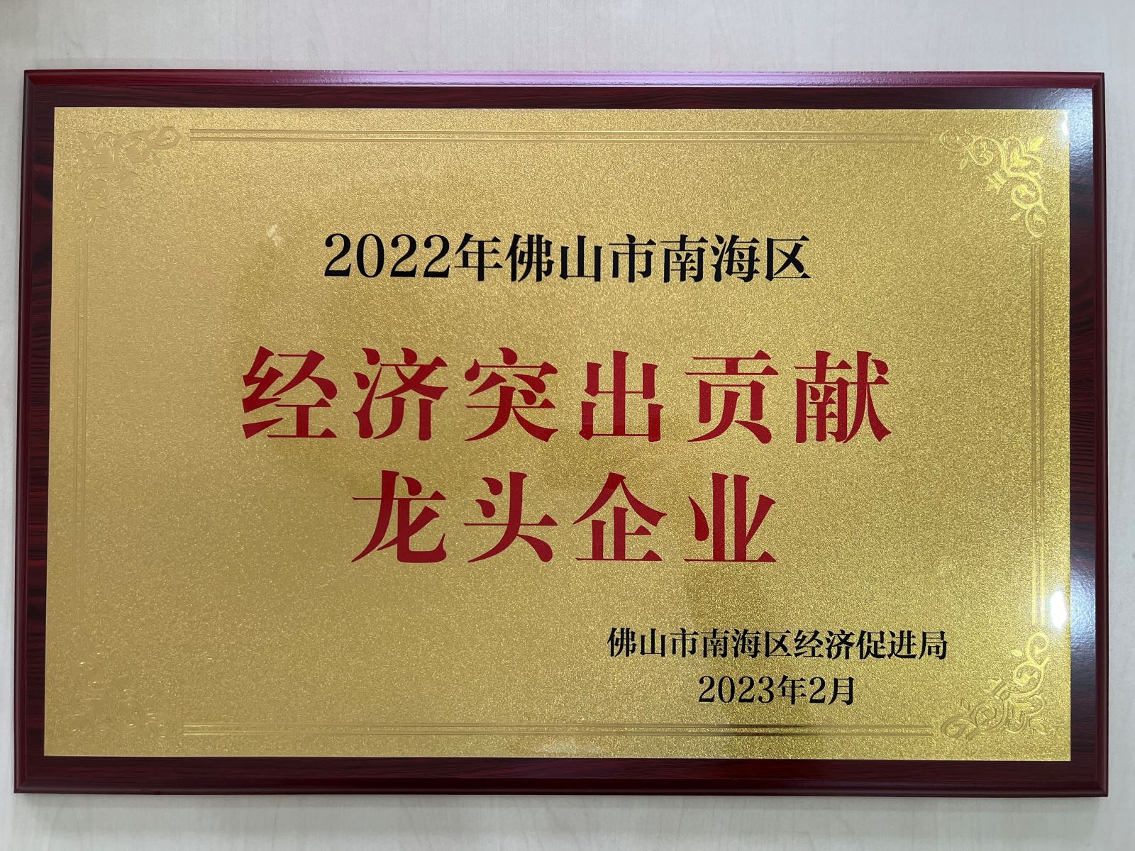 2023年2月 获评2022年度南海区“经济突出贡献龙头企业”