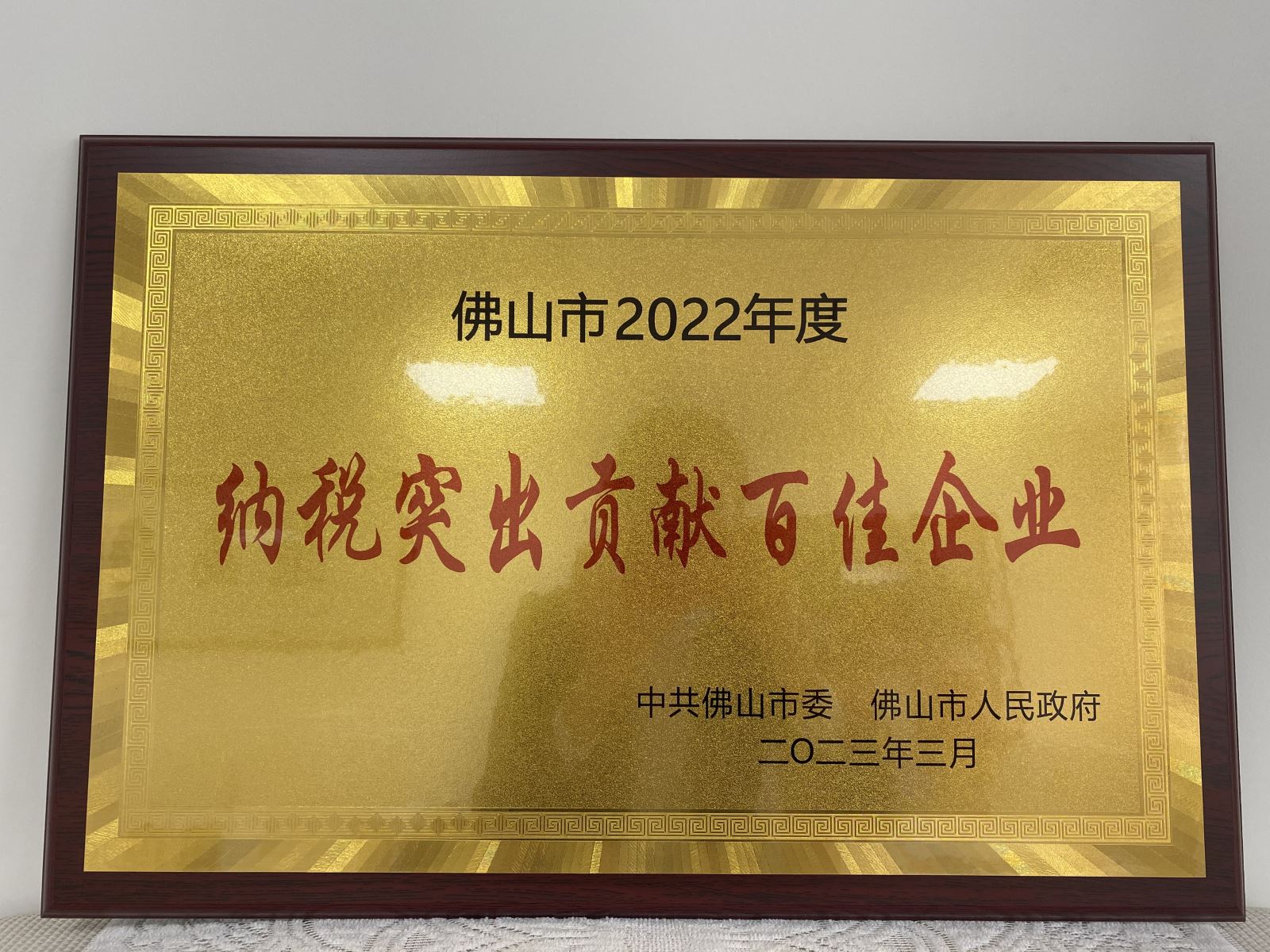 2023年3月 获得2022年度佛山市“纳税突出贡献百佳企业”称号