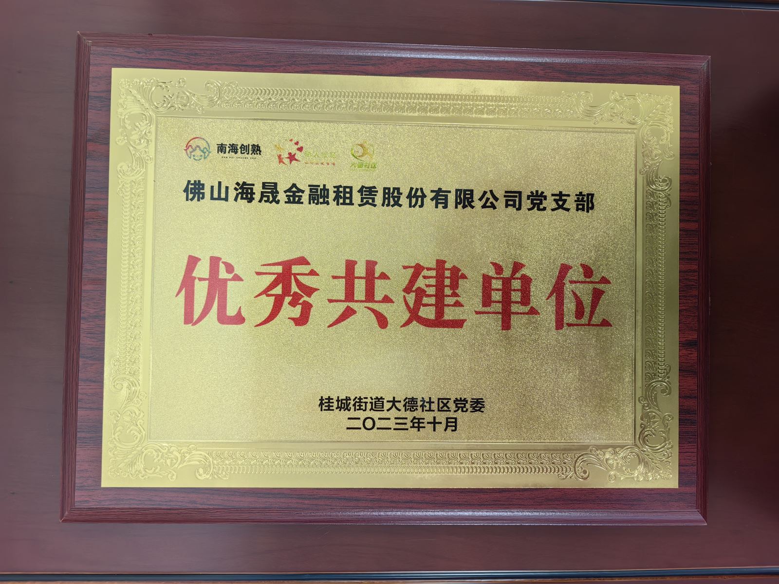2023年10月 被桂城街道大德社区党委授予优秀共建单位