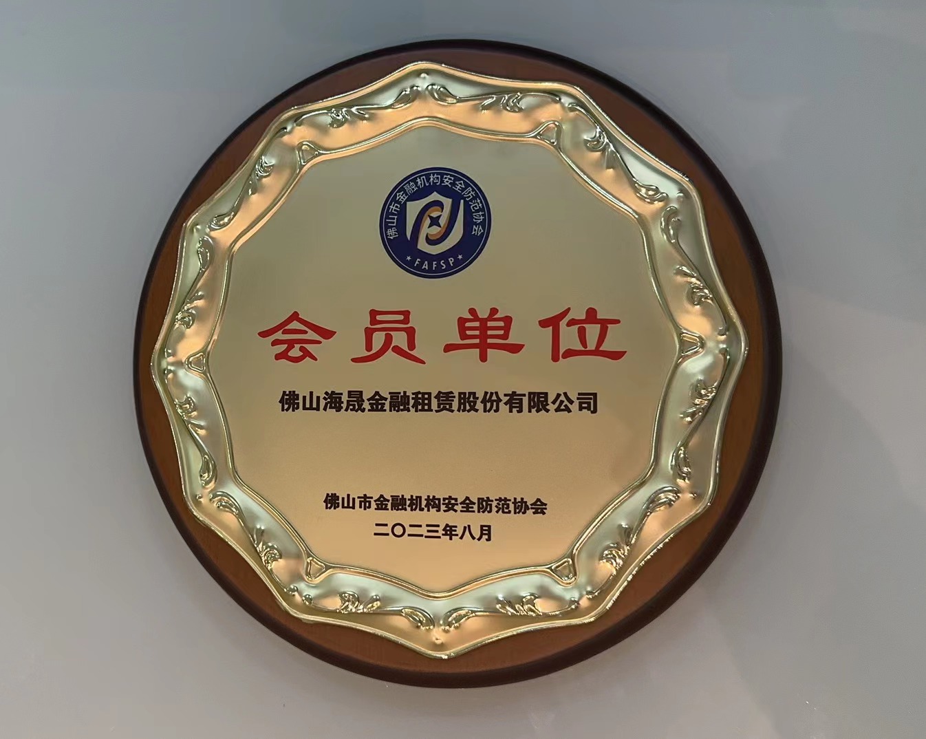 2023年8月 被佛山市金融机构安全防范协会授予会员单位