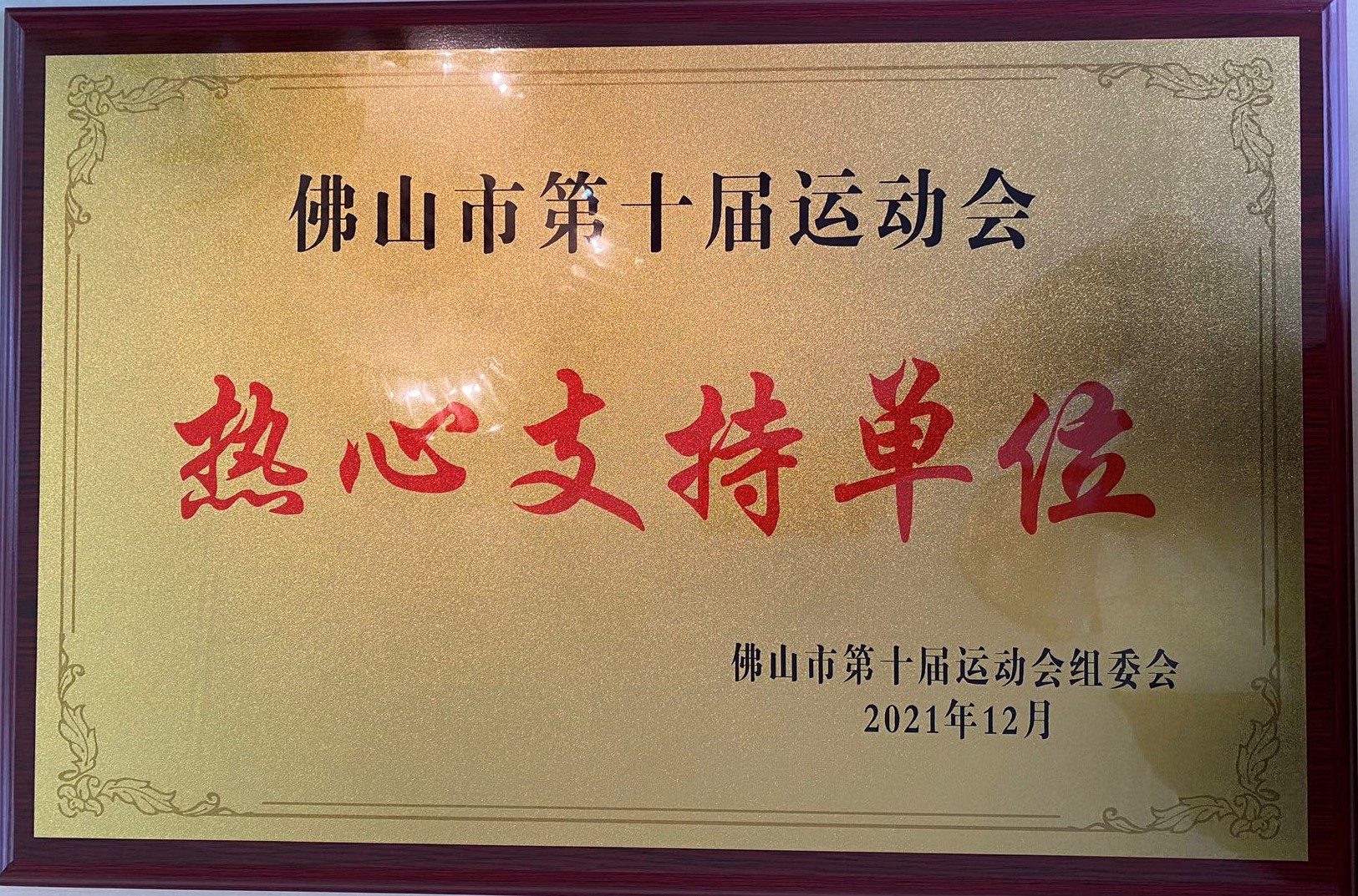 2021年12月 被评为佛山市第十届运动会热心支持单位
