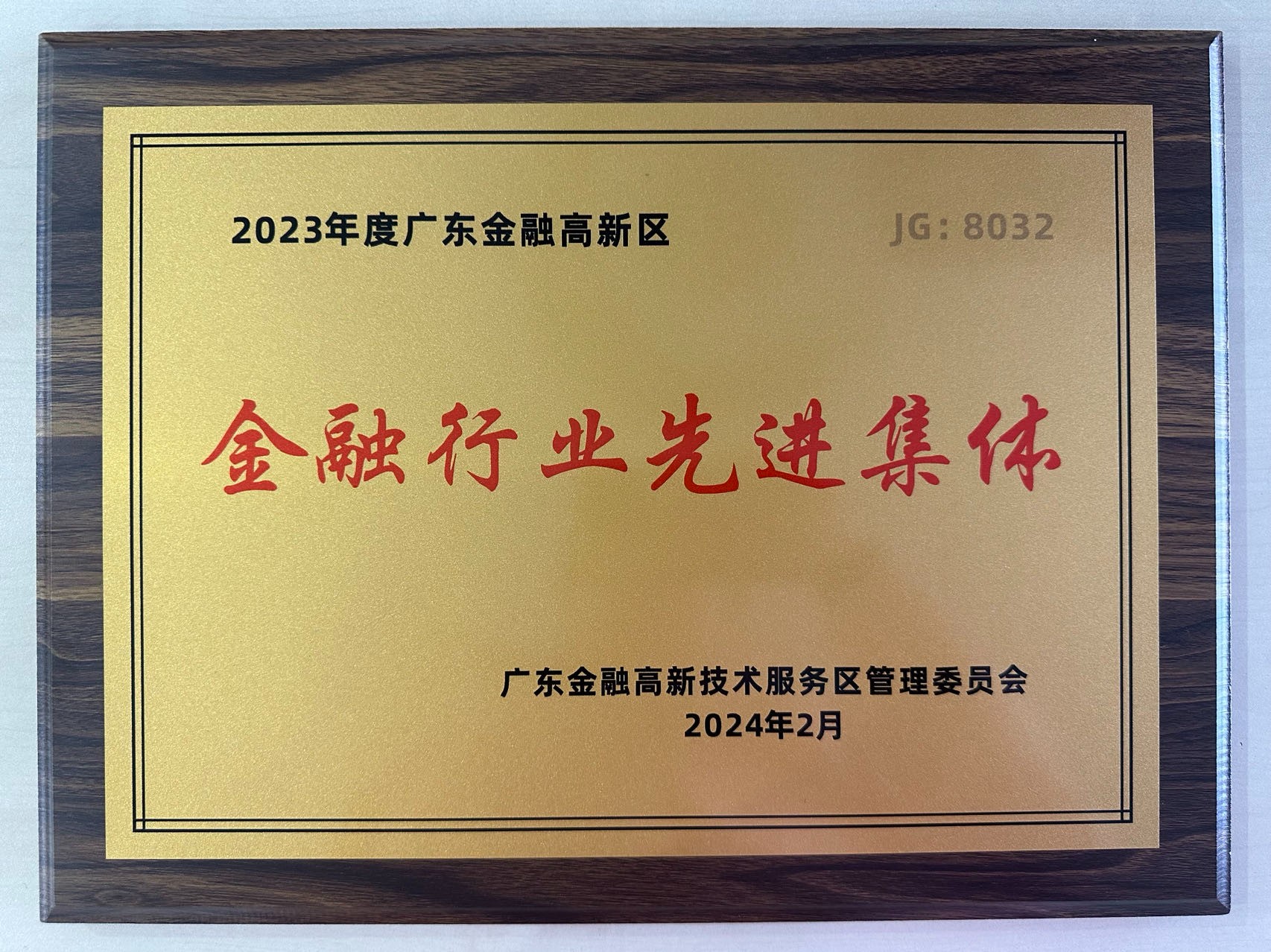 2024年2月 获得广东金融高新技术服务区管理委员会颁发的2023年度广东金融高新区金融行业先进集体奖