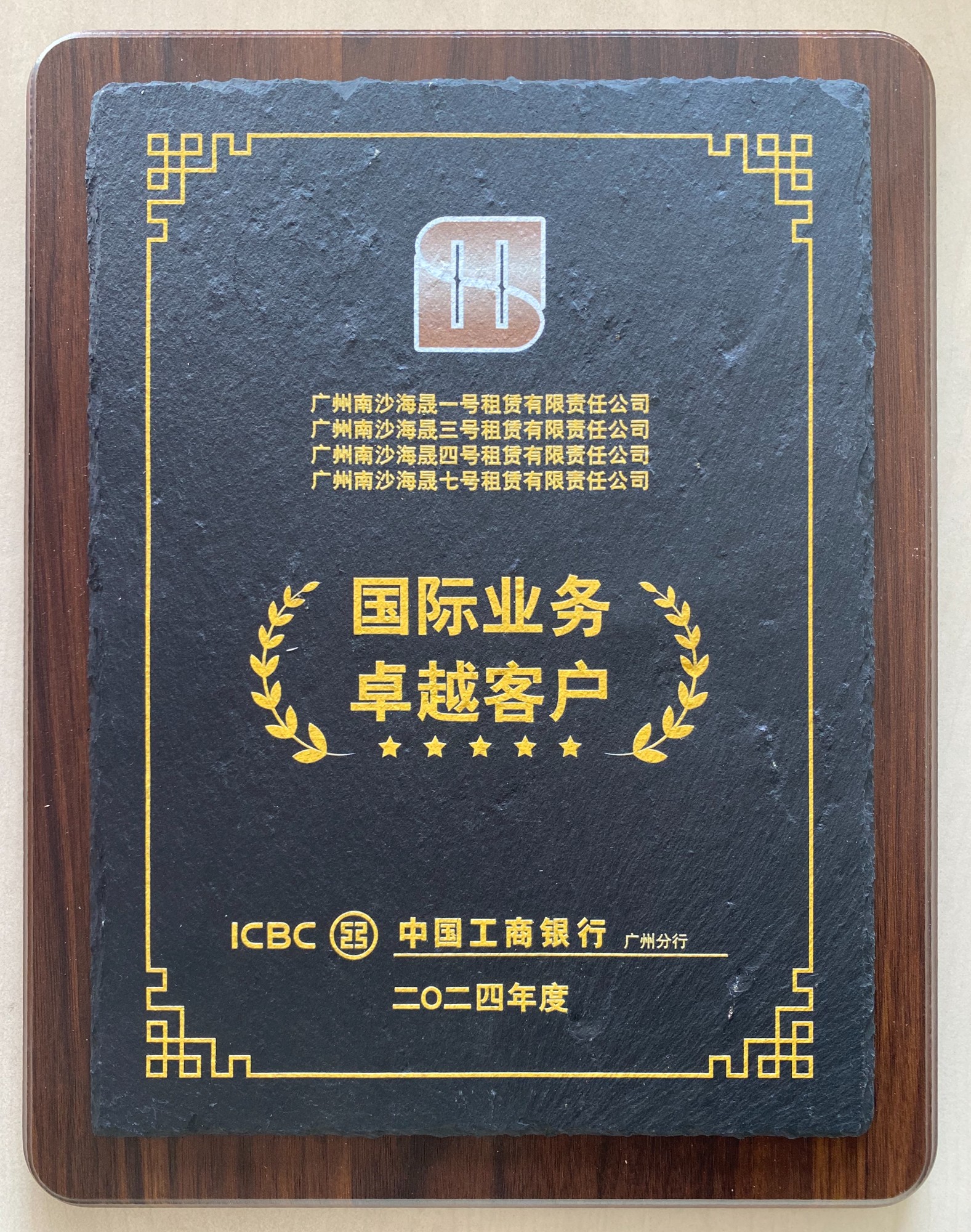2025年1月 广州南沙海晟一号租赁有限责任公司、广州南沙海晟三号租赁有限责任公司、广州南沙海晟四号租赁有限责任公司、广州南沙海晟七号租赁有限责任公司被中国工商银行广州分行评为2024年度国际业务卓越客户