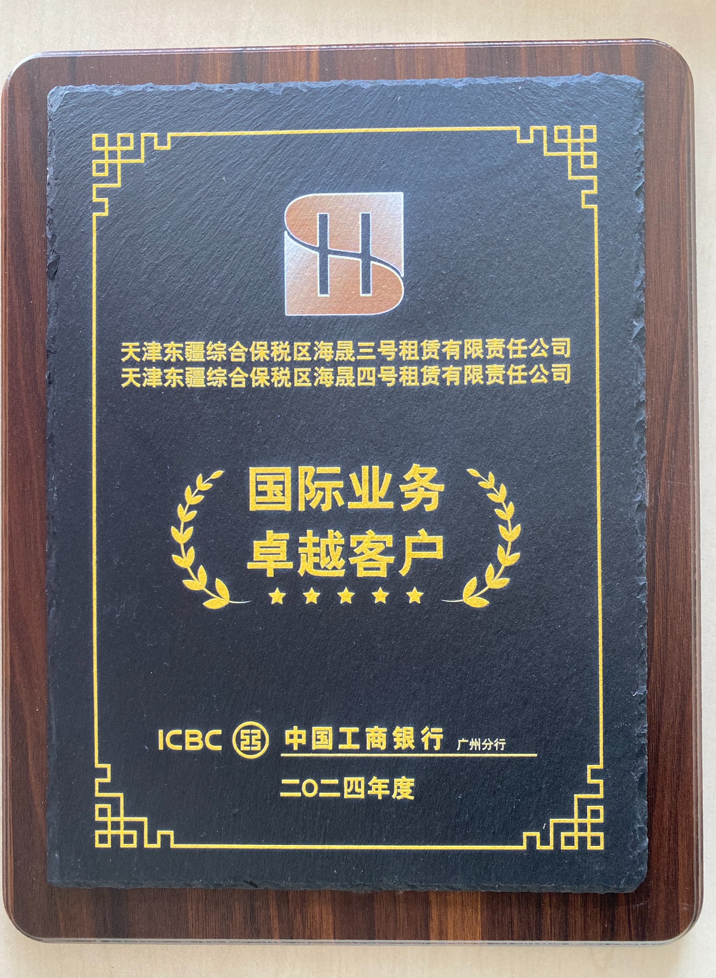 2025年1月 天津东疆综合保税区海晟三号租赁有限责任公司、天津东疆综合保税区海晟四号租赁有限责任公司被中国工商银行广州分行评为2024年度国际业务卓越客户